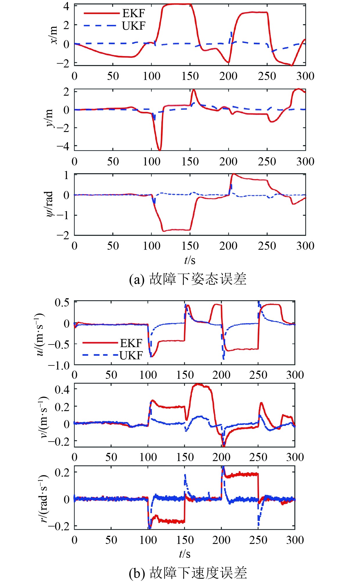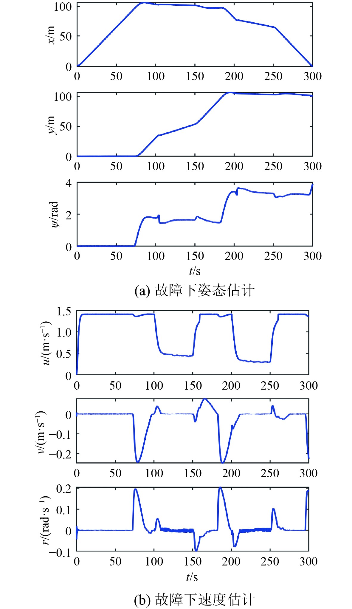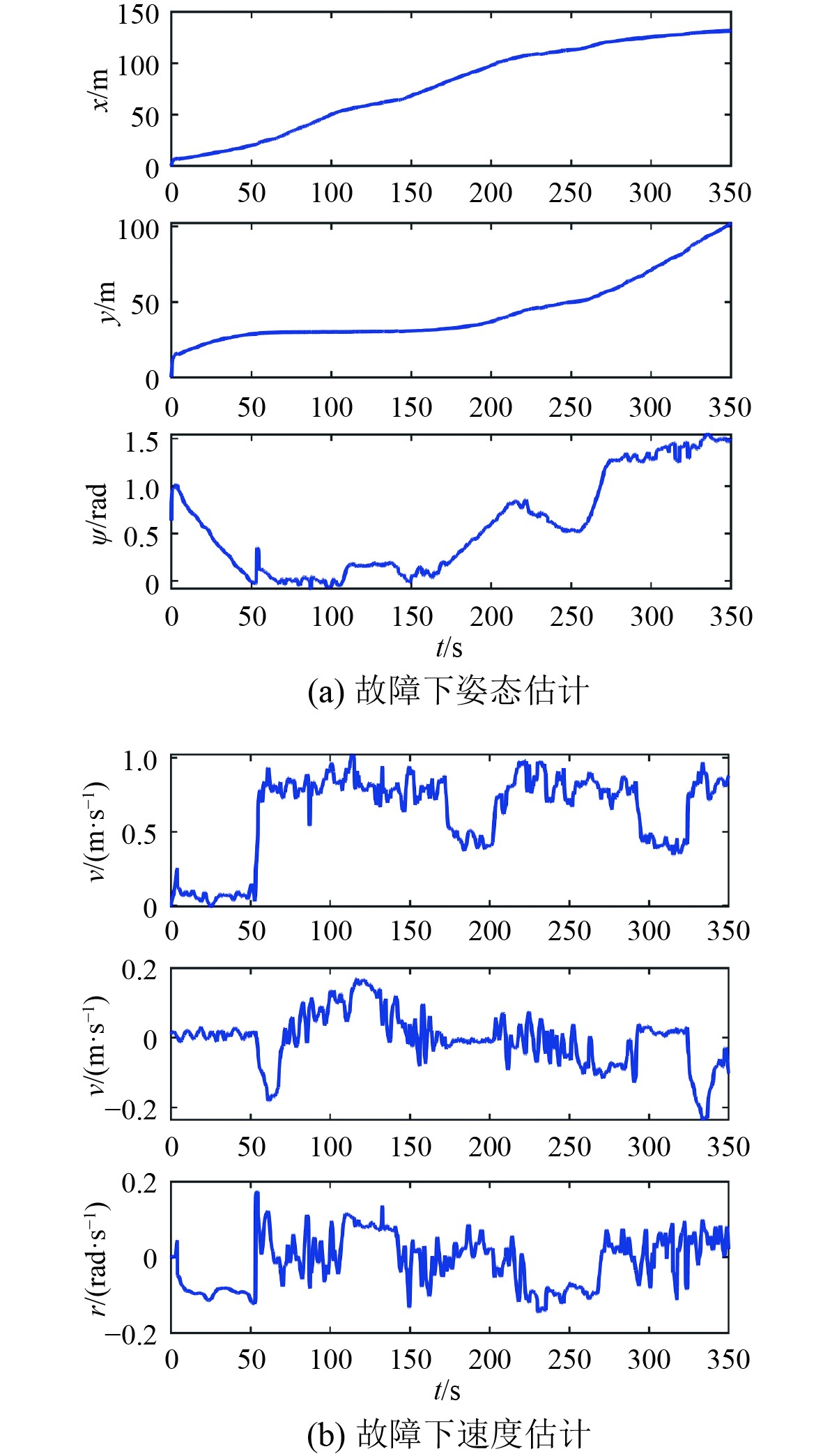 图 4 故障下USV的状态估计 Fig. 4 State estimation of USV under fault conditions |