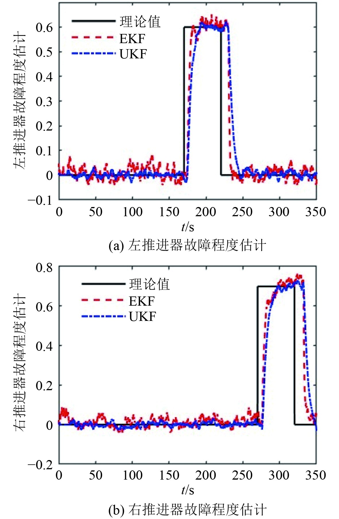 为表示推进器故障,在原状态向量式(5)中引入故障程度估计,增广后状态为:
