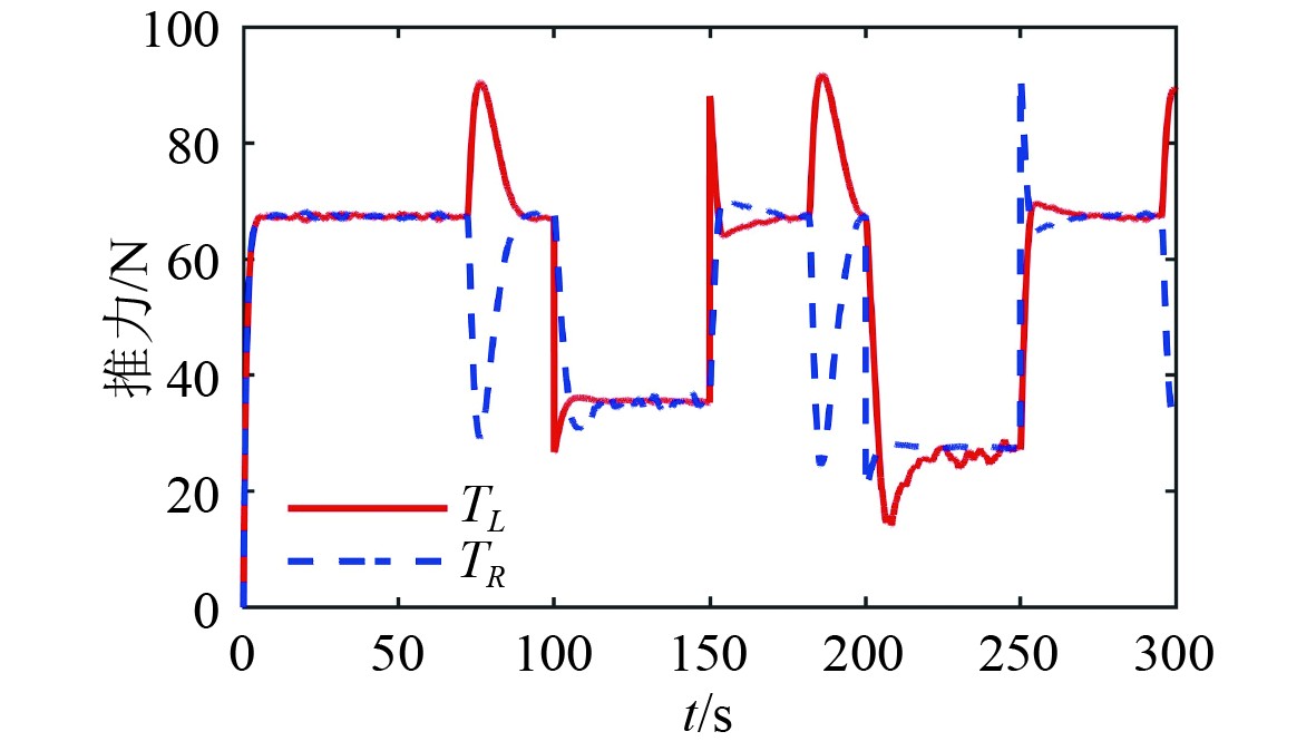 图 9 推力控制输入(实艇) Fig. 9 Thrust control input(real vessel) |