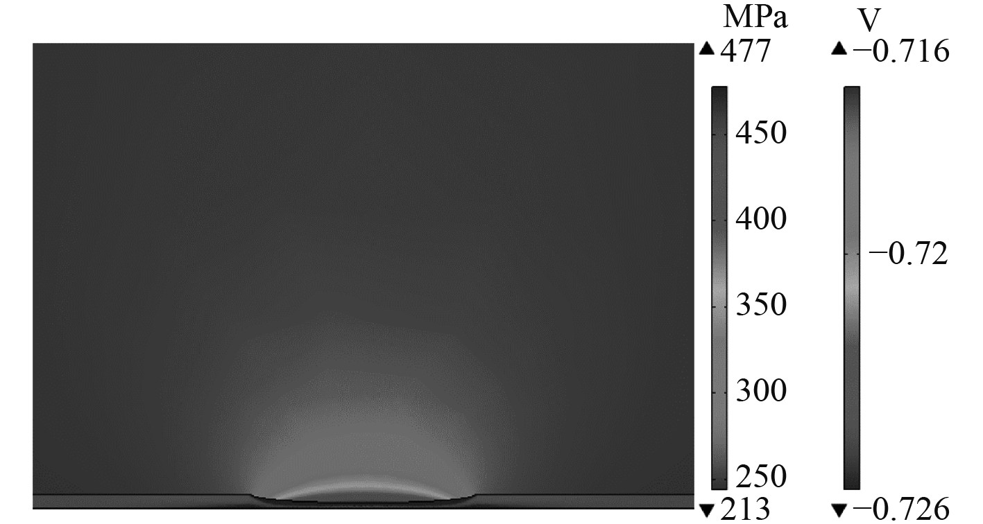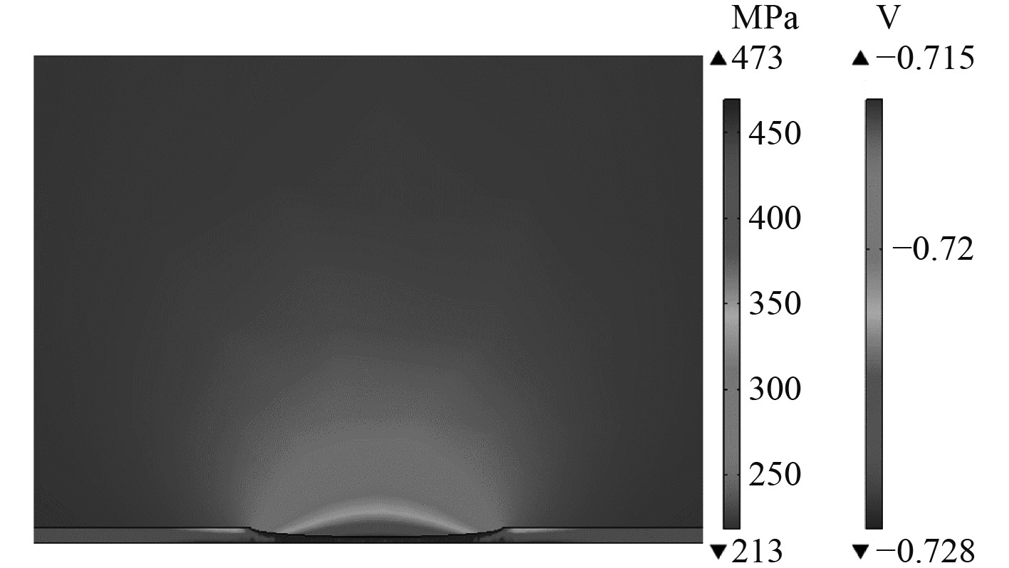 图 4 无热应力时缺陷处的应力腐蚀电位云图 Fig. 4 Stress corrosion potential cloud diagram at the defect without thermal stress |