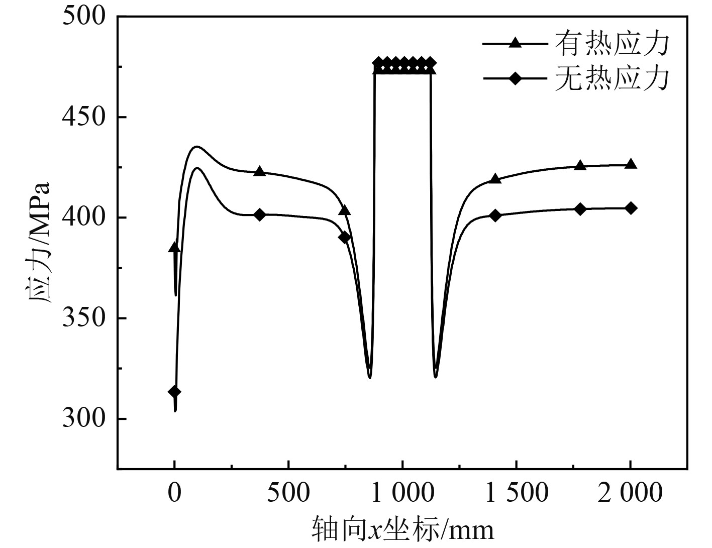 图 6 有无热应力时的von Mises应力 Fig. 6 Von Mises stress with or without thermal stress |