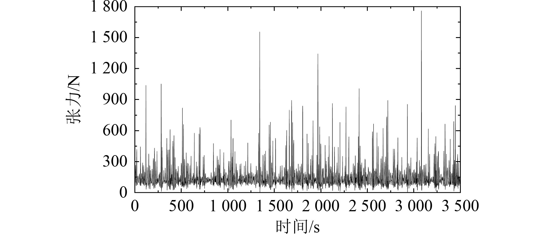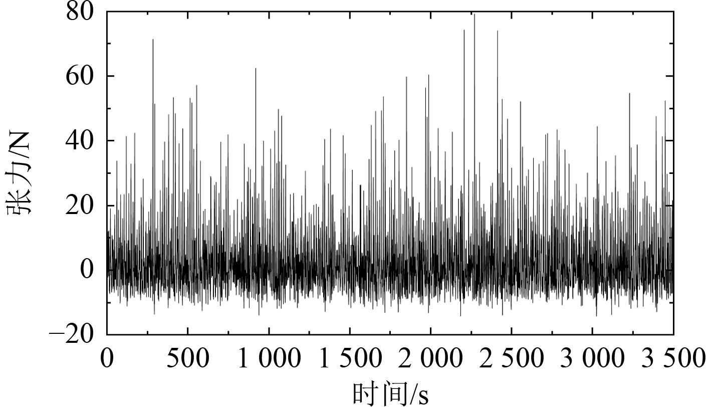 图 9 受力较大的软管1张力变化图 Fig. 9 Tension variation diagram of riser 1 under high stress |