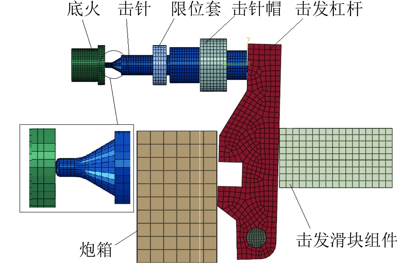图 2 击发机构有限元模型 Fig. 2 The finite element model of a firing mechanism |