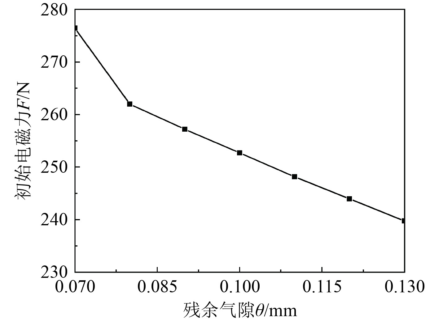 图 11 残余气隙与初始电磁力的关系 Fig. 11 The relationship between the residual air gap and the initial electromagnetic force |