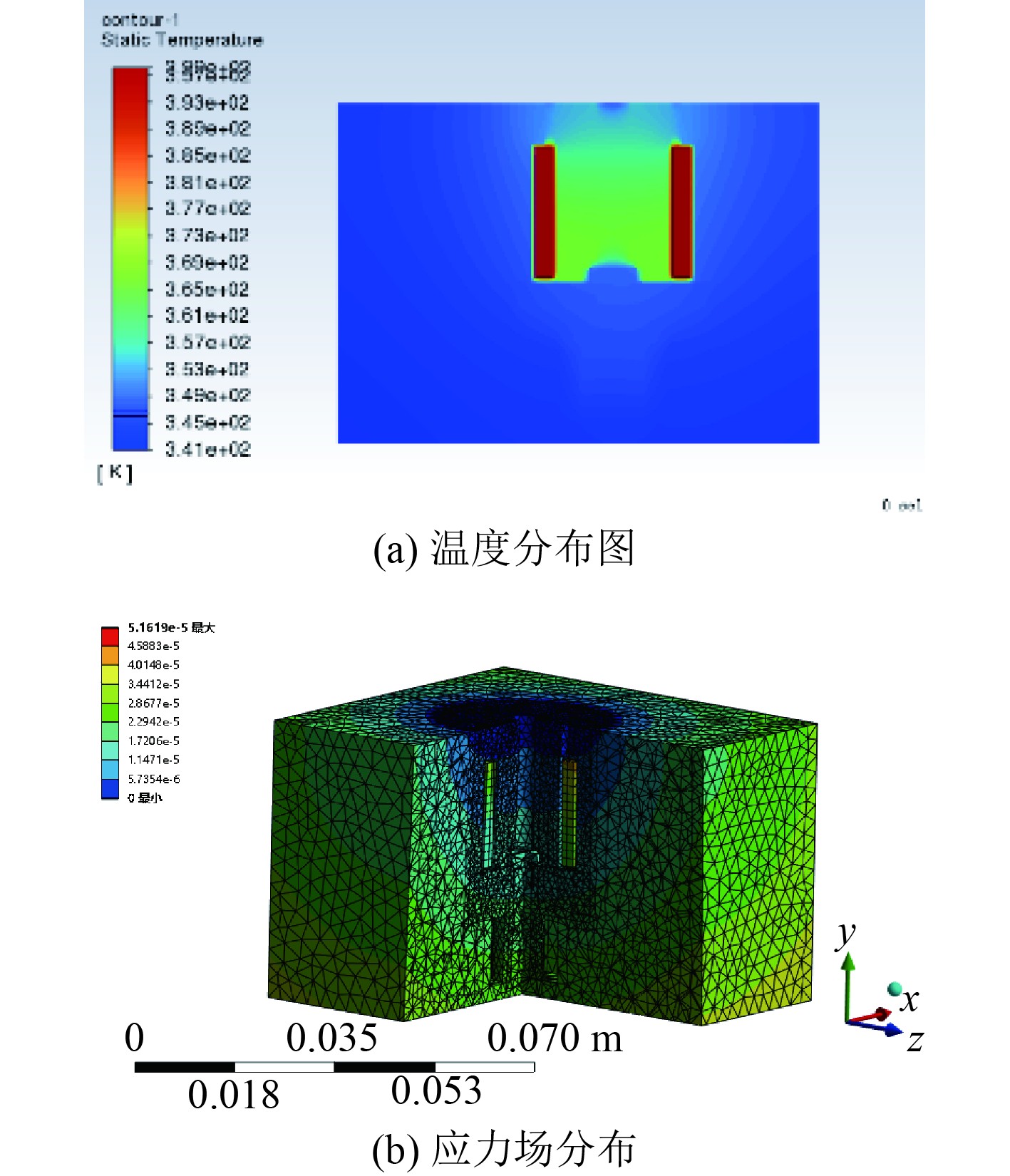 图 17 电磁阀温度与应力场分布图 Fig. 17 Temperature and stress field distribution diagram of solenoid valve |
