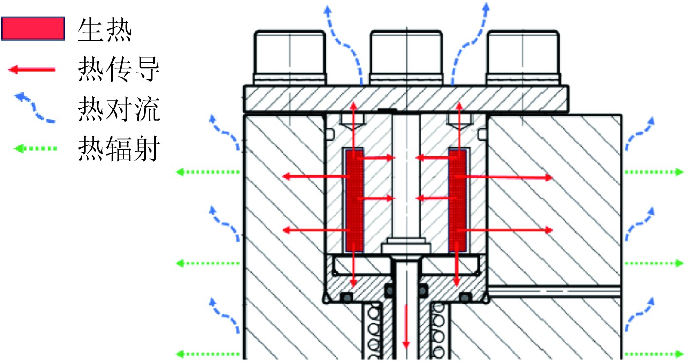 图 3 电磁阀线圈生热及传热示意图 Fig. 3 Solenoid valve coil heat generation and heat transfer schematic |