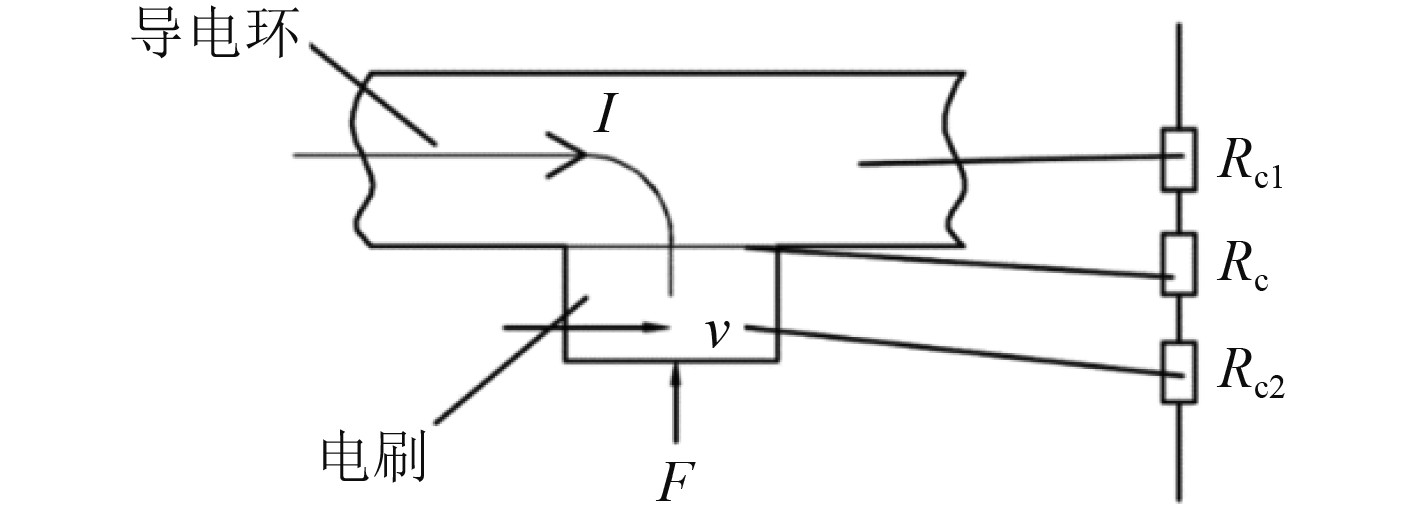 式中:Ua为正极-负极电刷结构两端电压;Ra为正极电刷与负极电刷间电阻,包括正极电刷、负极电刷、导电环自身电阻和电刷-导电环接触界面电阻。本文忽略电刷和导电环自身电阻影响,L为正极电刷-负极电刷-导电环电感;I为通电电流。