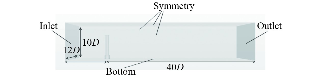1.2 计算边界条件及网格划分目标旋筒风帆计算域的尺寸设置参考旋筒风帆主尺度参数,D为旋筒风帆直径。计算域宽12D,高10D,长50D,数值计算采用模型尺度。