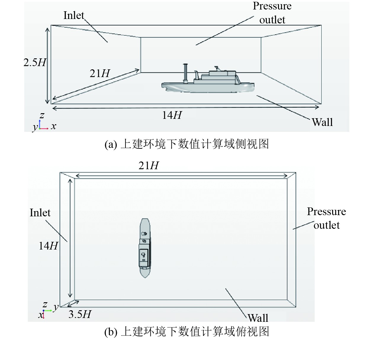 图 8 上层建筑环境下数值计算计算域 Fig. 8 Numerical computation domain under the superstructure environment |
