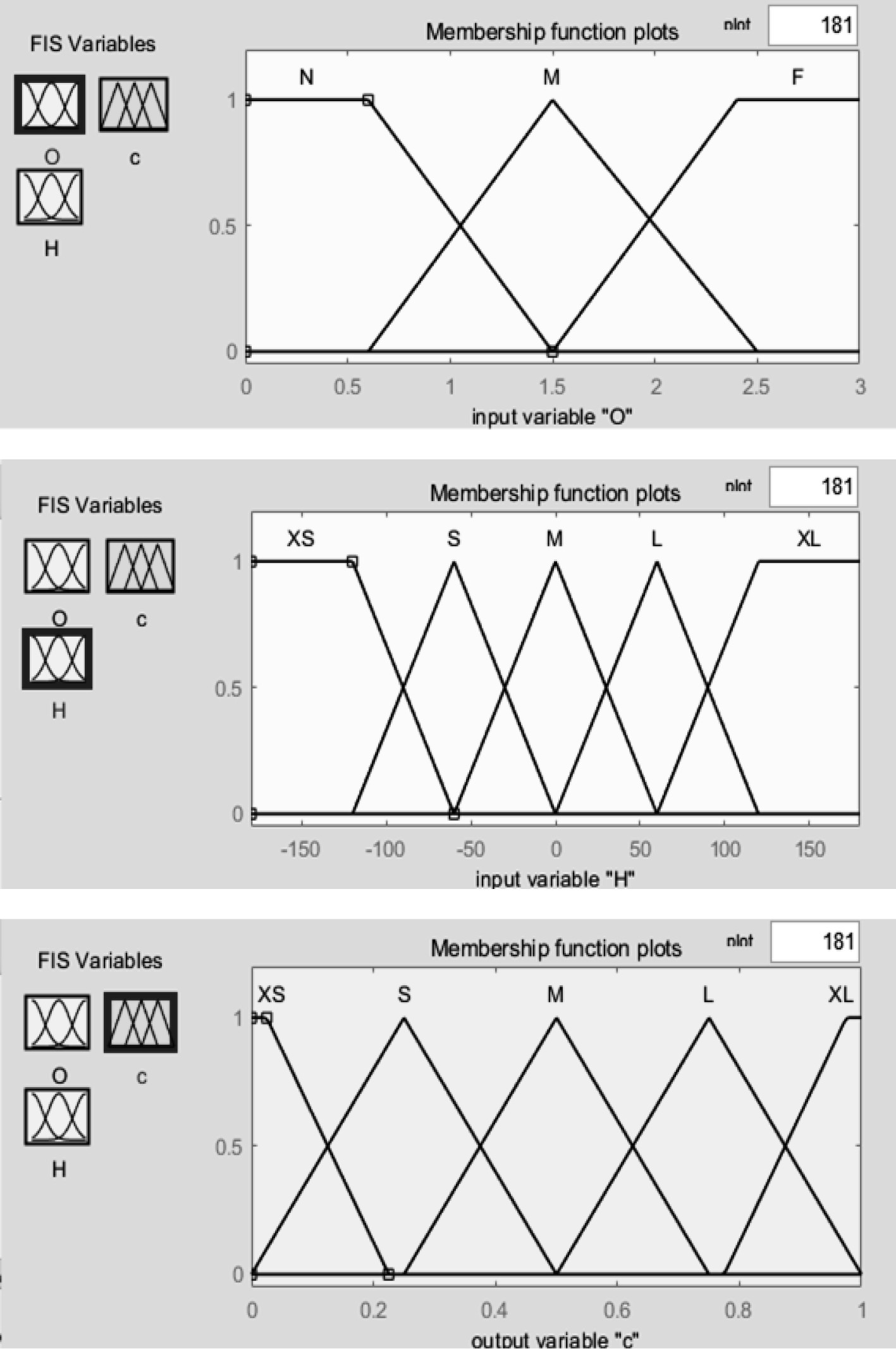 3)组合模糊控制器输入变量为H、O;输出变量为c。