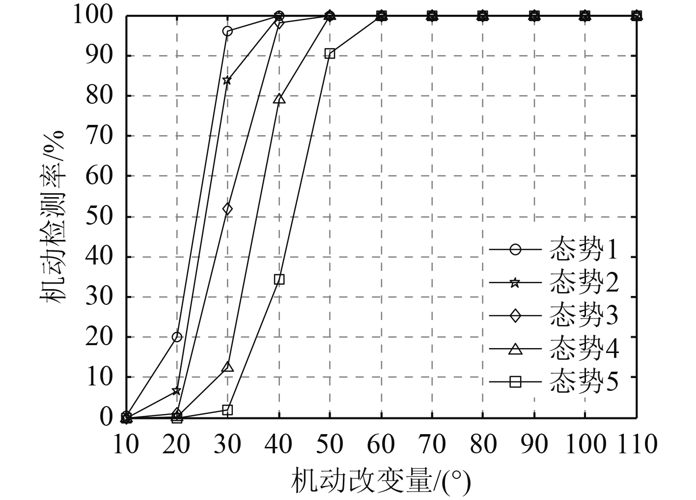 图 7 机动检测率随目标机动量的变化 Fig. 7 The variation of maneuver identification rate with maneuvering volume |