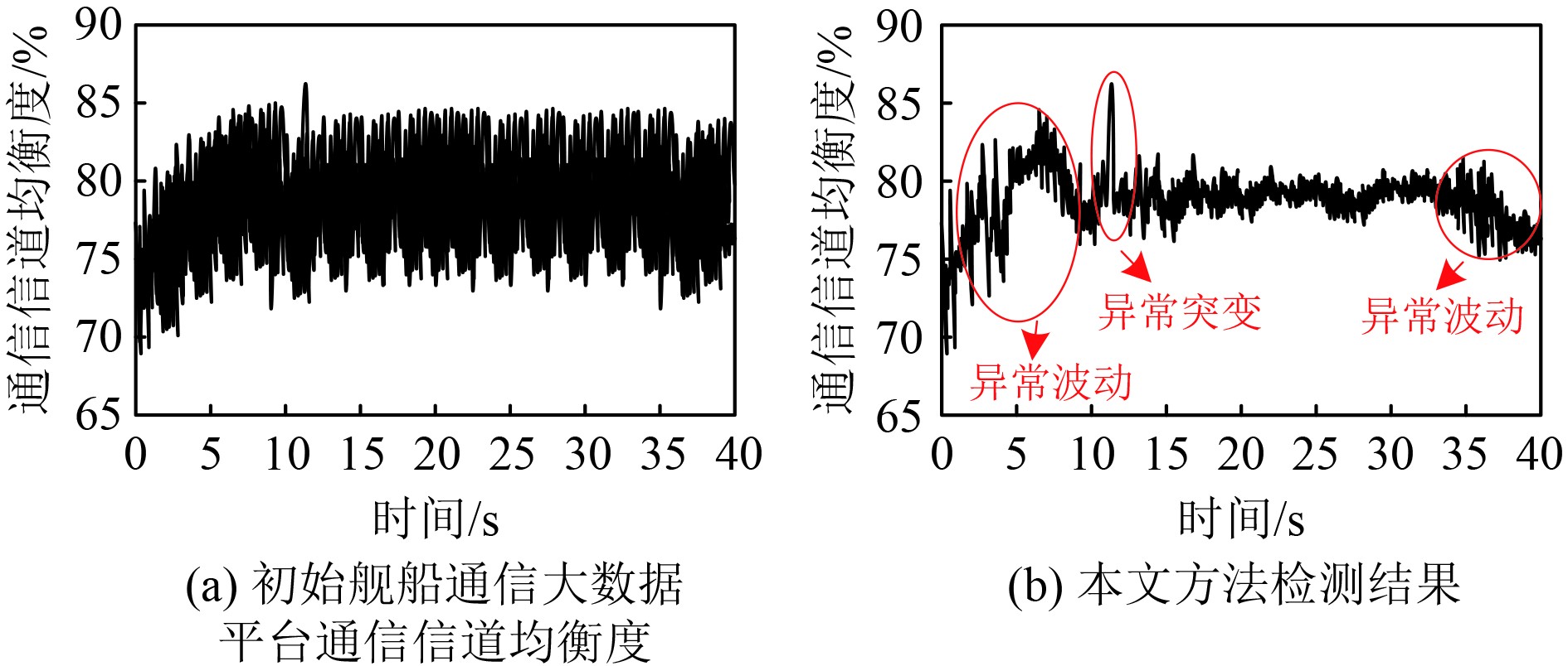 通过本文方法进行舰船通信大数据异常检测,依据实时采集的舰船通信大数据平台通信信道的均衡度,通过本文方法能够有效捕捉其中的微小变化情况,从而实现精准的舰船通信大数据异常检测,得到的结果如图5所示。