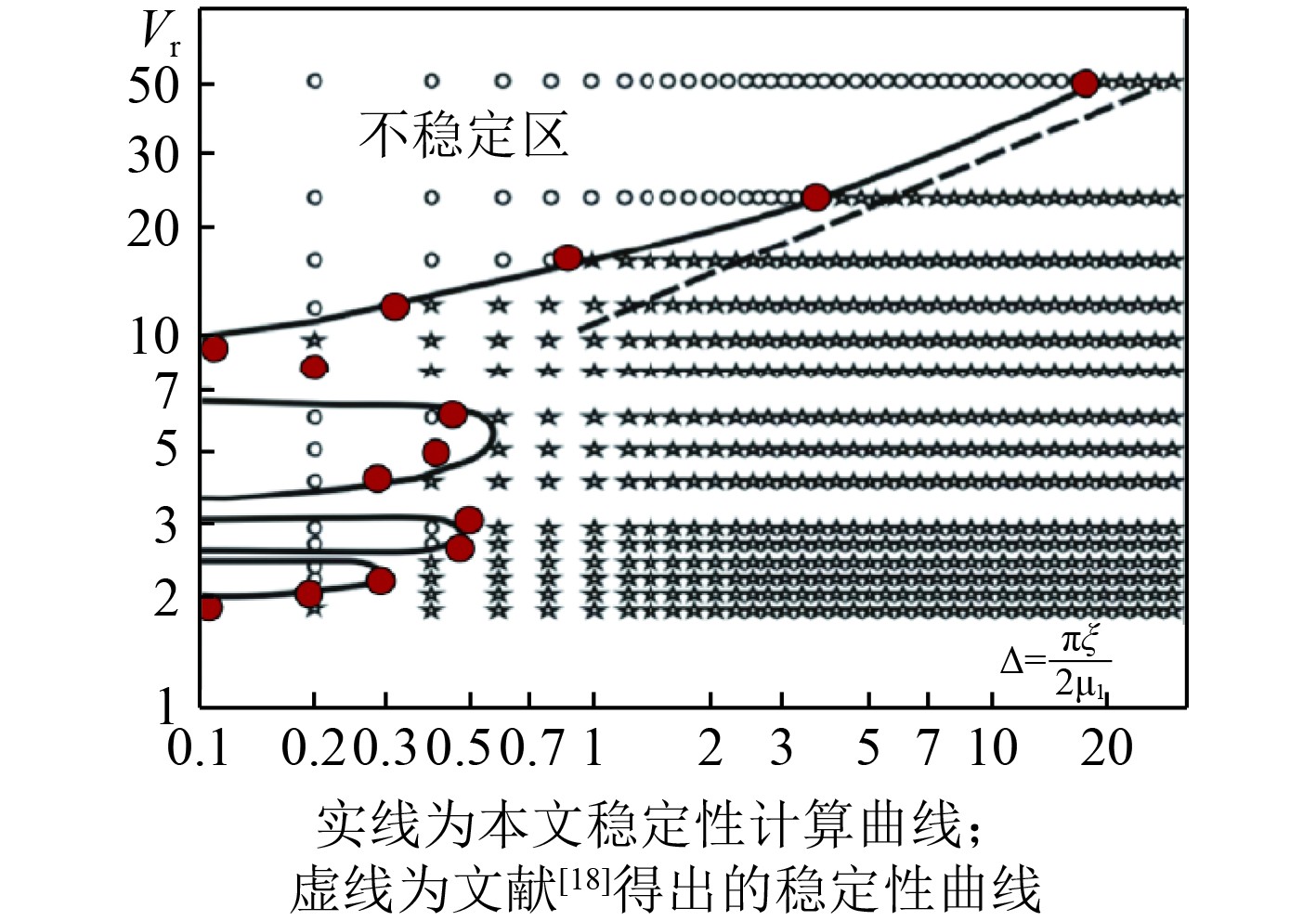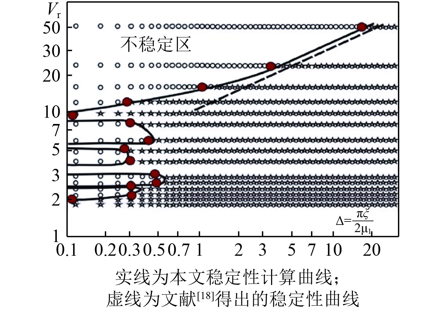 稳定性条件(11)中包含2个无量纲参数,无量纲频率