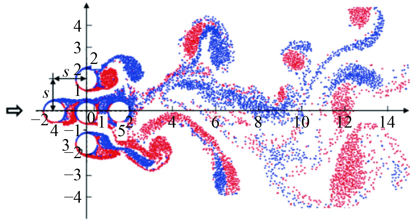 图 6 五管束绕流数值试验 Fig. 6 Numerical experiments on the flow around a five-tube bundle |