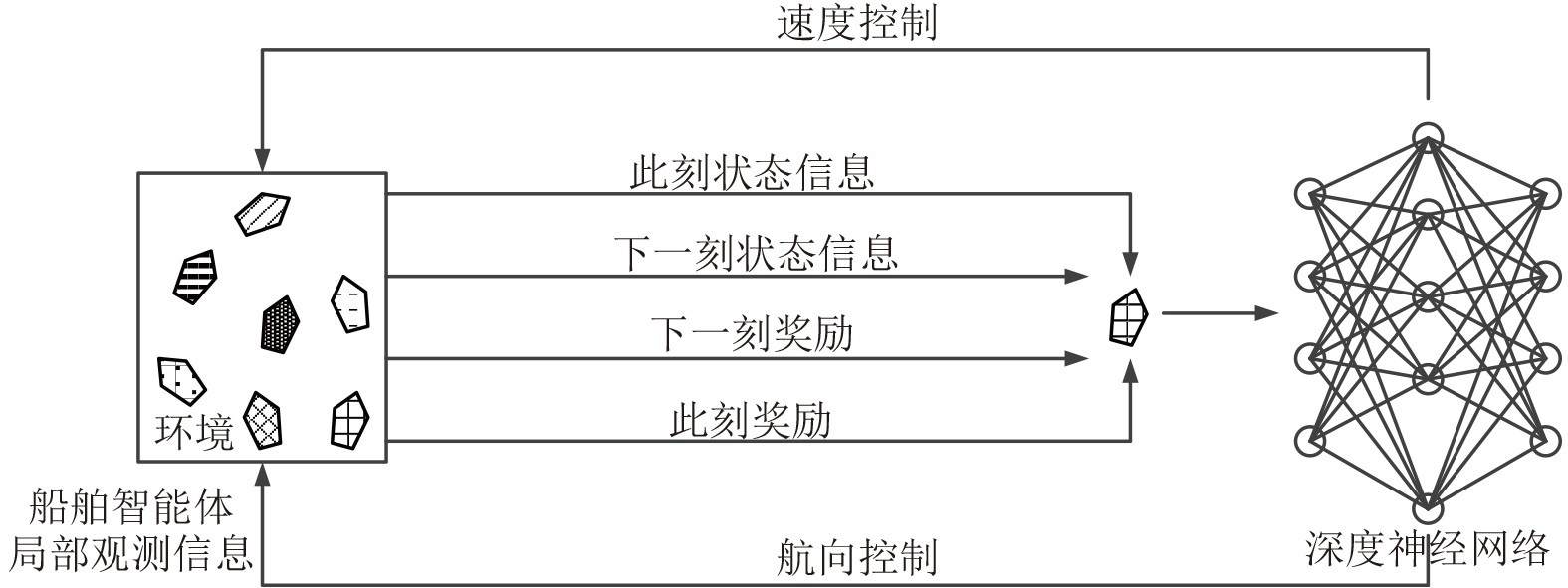为了实现多目标船舶避碰,利用深度强化学习算法中的深度神经网络[12]根据船舶多智能体系统制定最优避碰决策。