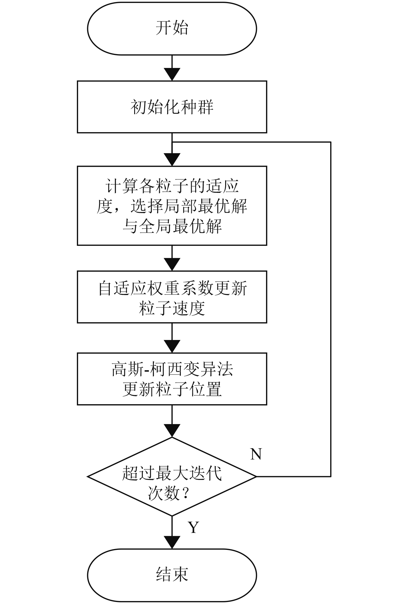 图 1 改进后粒子群算法流程图 Fig. 1 Flowchart of the improved PSO algorithm |
