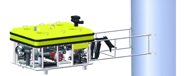 1) 通过支架与风电桩基形成刚性接触,将风电桩清洗ROV 六度控制转换为深度与艏向角控制,大大降低控制难度。