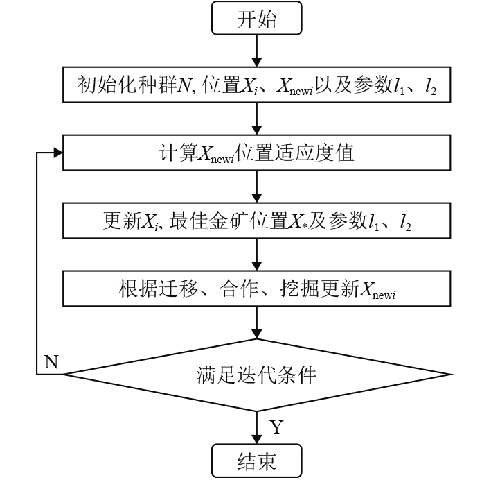 淘金优化器算法是一种基于人类淘金活动的元启发式算法,以淘金活动中的迁移、合作、挖掘3种核心行为抽象而来[13],目的是寻找到最优金矿。