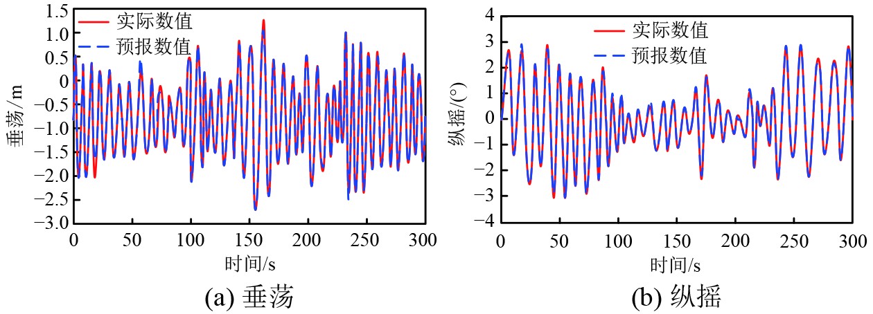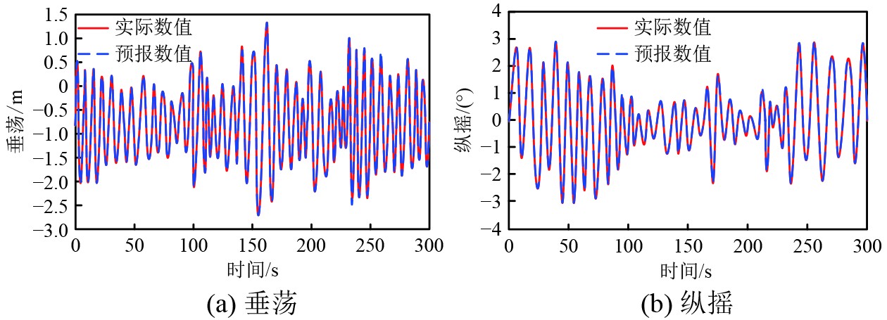 在海洋工程领域,仅具有一个连续船体的水面单体船的耐波性直接关乎航行安全、舰载设备作业效率与船员舒适性。当舰船的垂荡振幅≥0.5 m、纵摇角度≥3°的运动状态时处于大幅运动状态。其在迎浪航行时的垂荡与纵摇大幅运动是影响舰船性能的核心因素,船首频繁的波浪砰击易引发甲板上浪、结构疲劳,垂荡与纵摇的强耦合还会导致舰载机着舰风险剧增、主动减摇系统失效[1]。因此,实现迎浪时垂荡、纵摇大幅运动的精准预报,对舰船设计优化、航行决策与装备控制具有重要工程价值。
