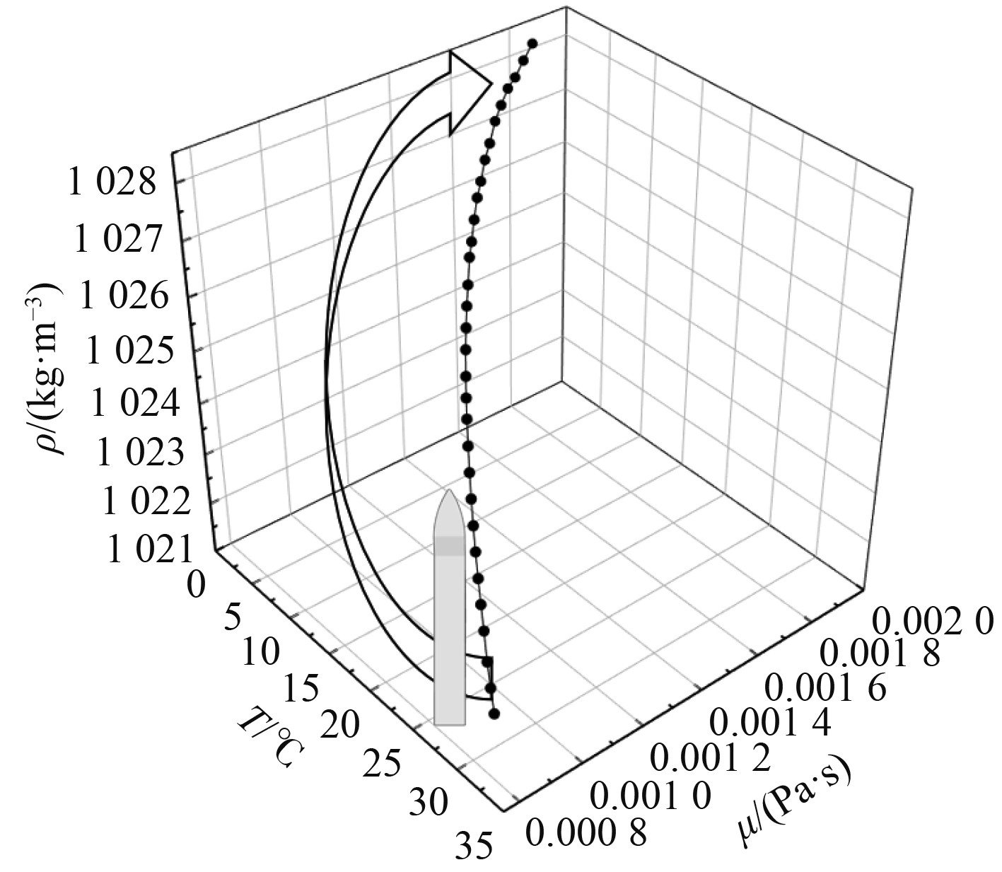 图 2 不同温度海域下密度与动力粘度曲线 Fig. 2 Density and dynamic viscosity curves under different temperature sea areas |