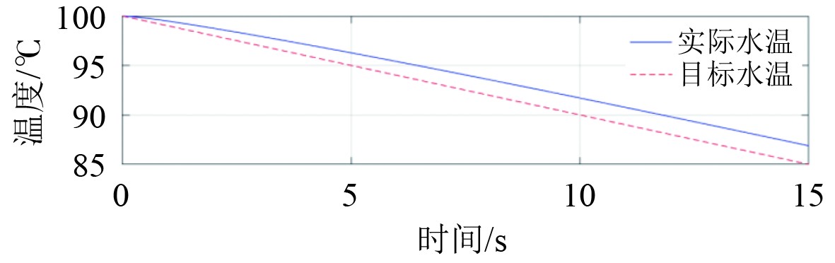设置95℃和90℃两个静态目标温度,仿真结果如图3所示,系统首先控制温度到95℃,然后稳定一段时间后控制温度到90℃,通过观察曲线可知,表明系统具有极高的静态控制精度,能稳定维持主机冷却水在设定的最佳工作温度。