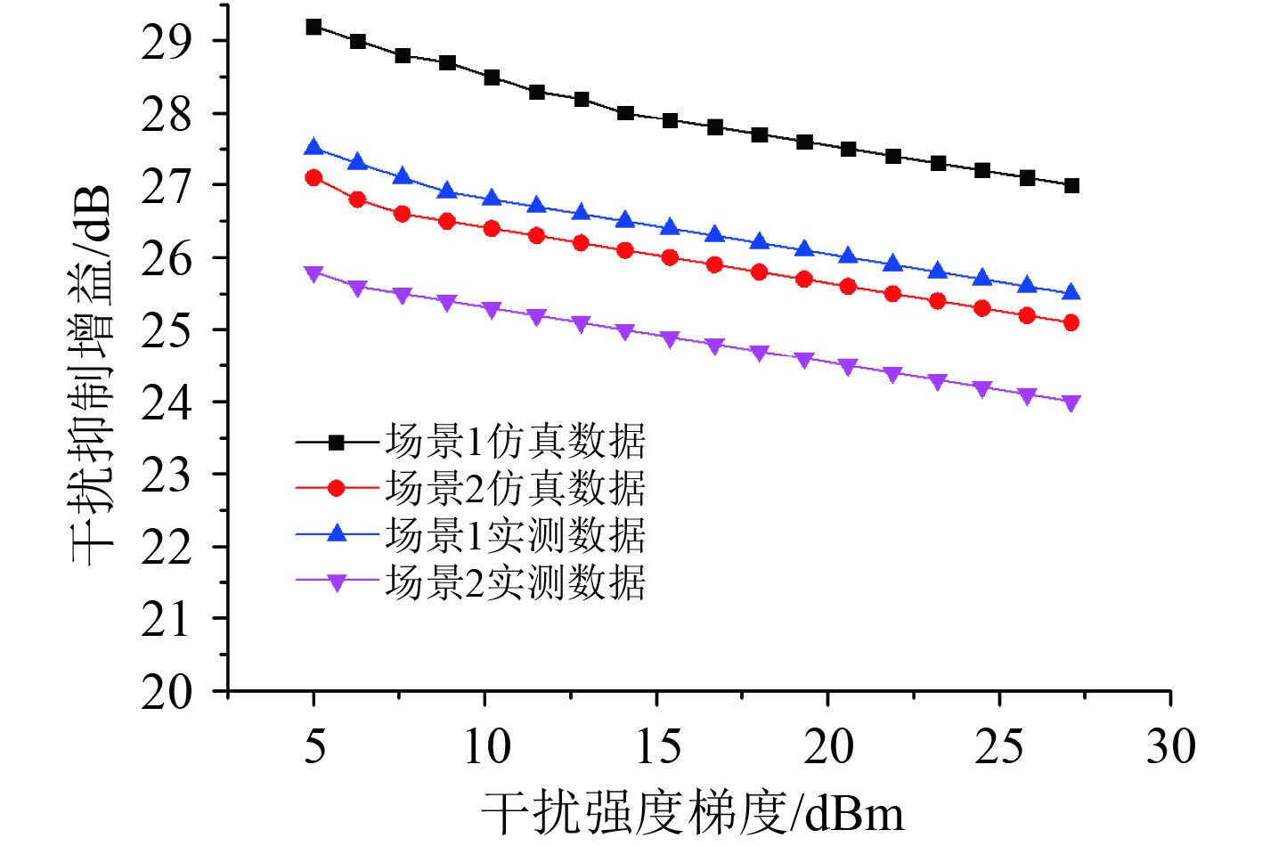 图 2 不同场景下干扰抑制增益测量结果 Fig. 2 Measurement results of interference suppression gain in different scenarios |
