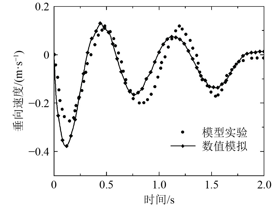 图 3 浮体垂向速度历时曲线 Fig. 3 Vertical velocity time history curve of floating body |