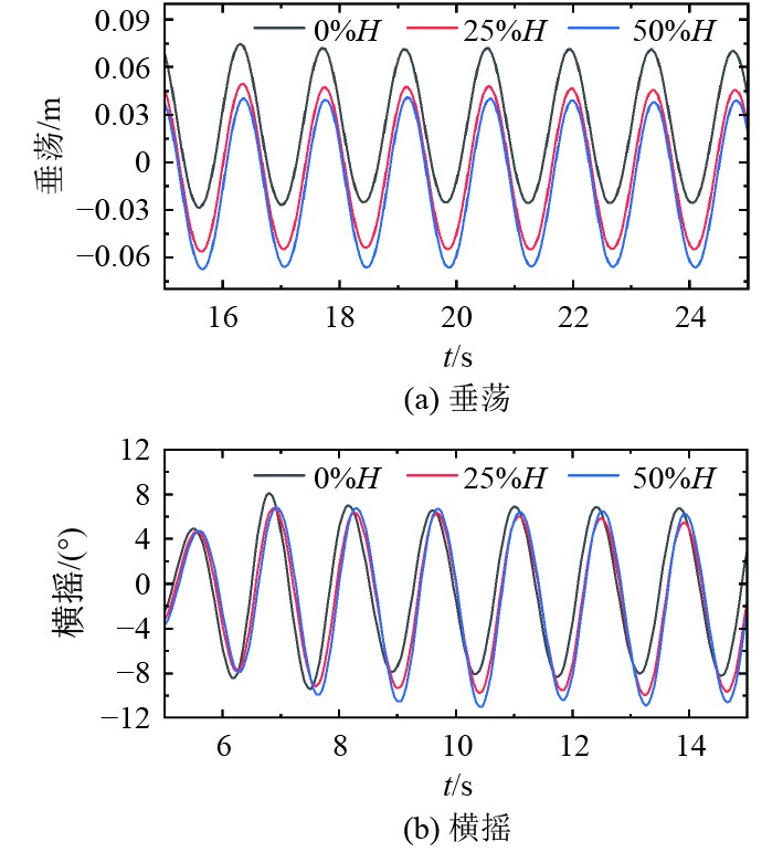 图 15 1号船在不同载液率下的运动对比曲线 Fig. 15 Comparison curves of ship1 movement at different loading rates |