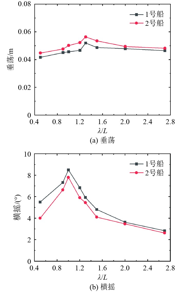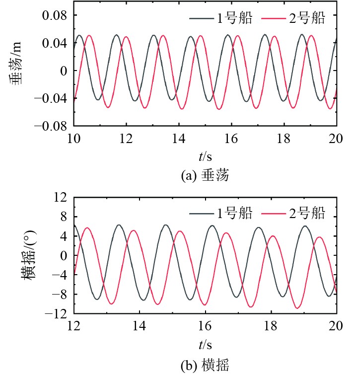 图 3 并靠船舶运动幅值 Fig. 3 Amplitude of motion of two ships |