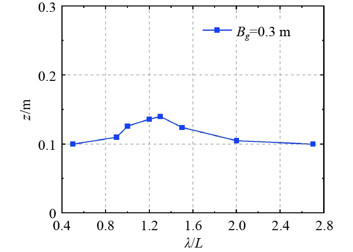 图 4 间隙波高随波长变化 Fig. 4 Change of gap wave height with wavelength |