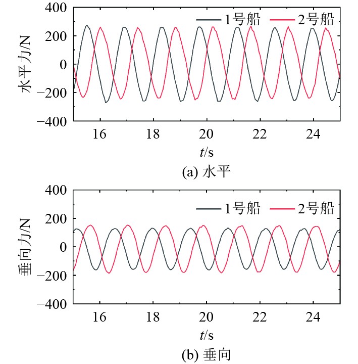 图 8 λ/L=1时的并靠船舶受力变化曲线 Fig. 8 Stress change curve of two ships when λ/L=1 |