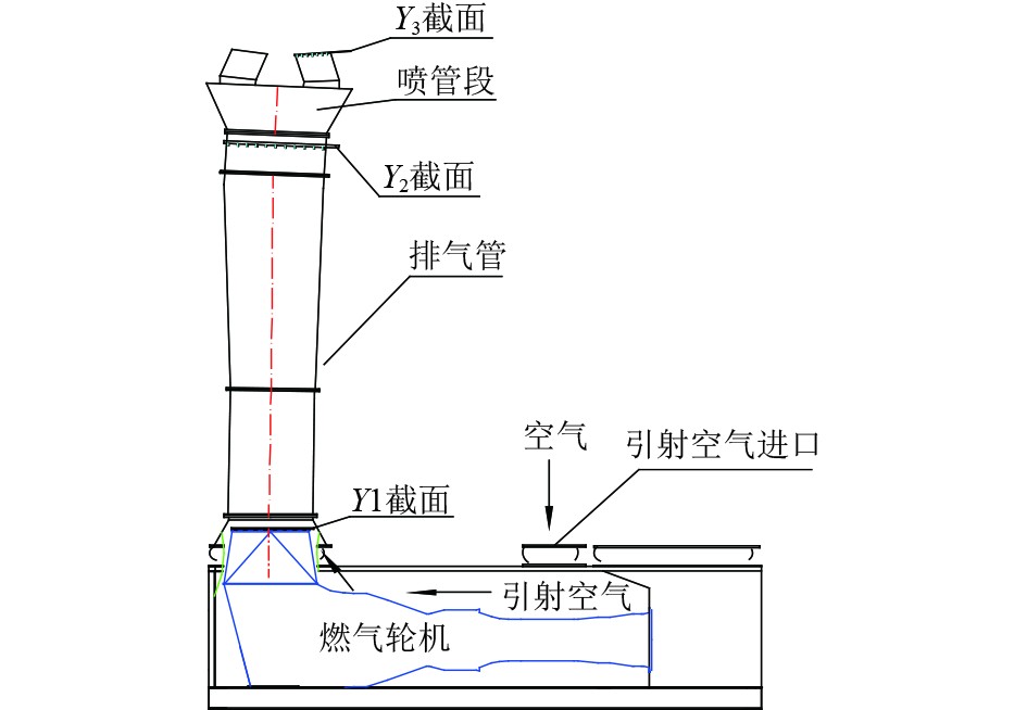 如图2所示,为计算排气管阻力及喷管段阻力损失,将燃气轮机排气出口设为Y1截面、喷管段进口设为Y2截面、喷管段喷口出口设为Y3截面。