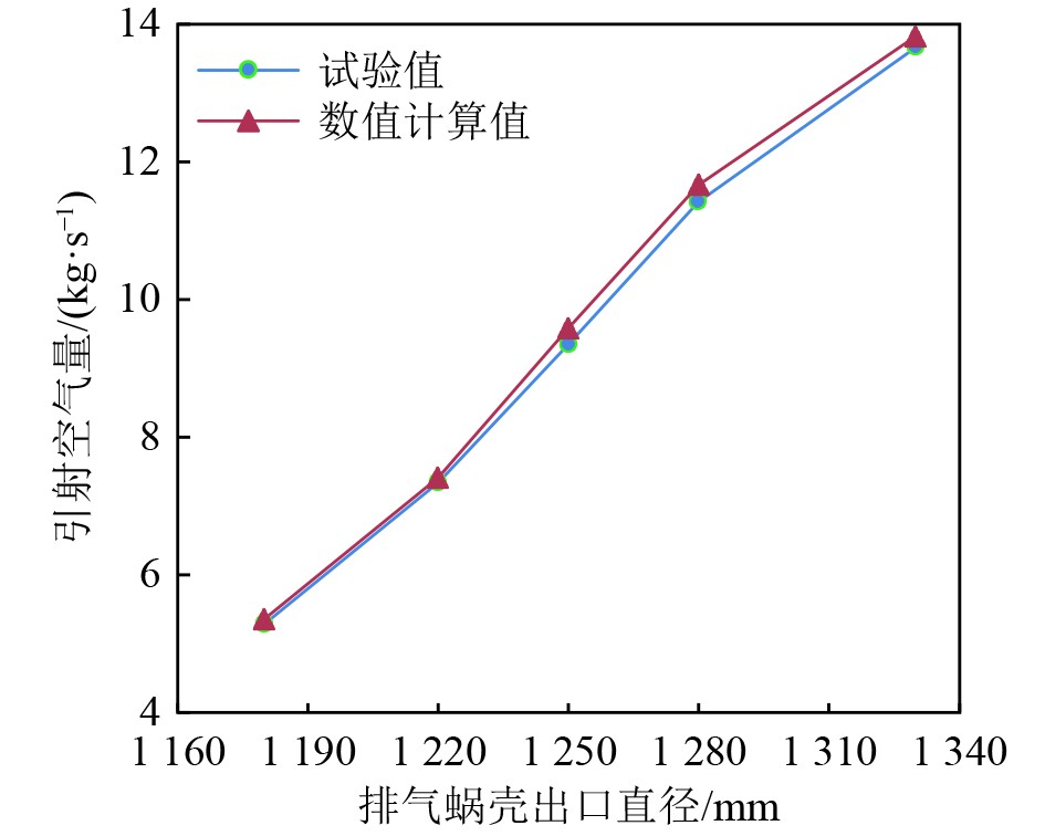 为提升箱装体排气引射空气量、满足排气系统阻力要求,本文通过缩小排气蜗壳喷口、变化气蜗壳出口与排气管对中情况、变化喷管段结构3个方面进行了相关研究。