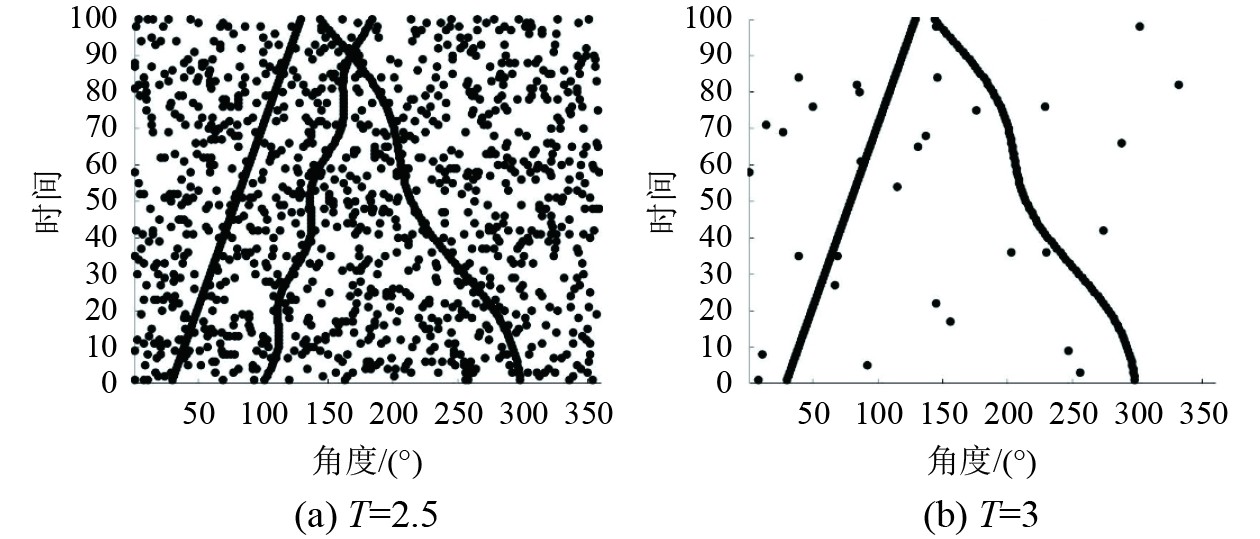 图 5 传统方法方位历程图峰值提取结果 Fig. 5 Peak extraction results from bearing-time recording using traditional method |