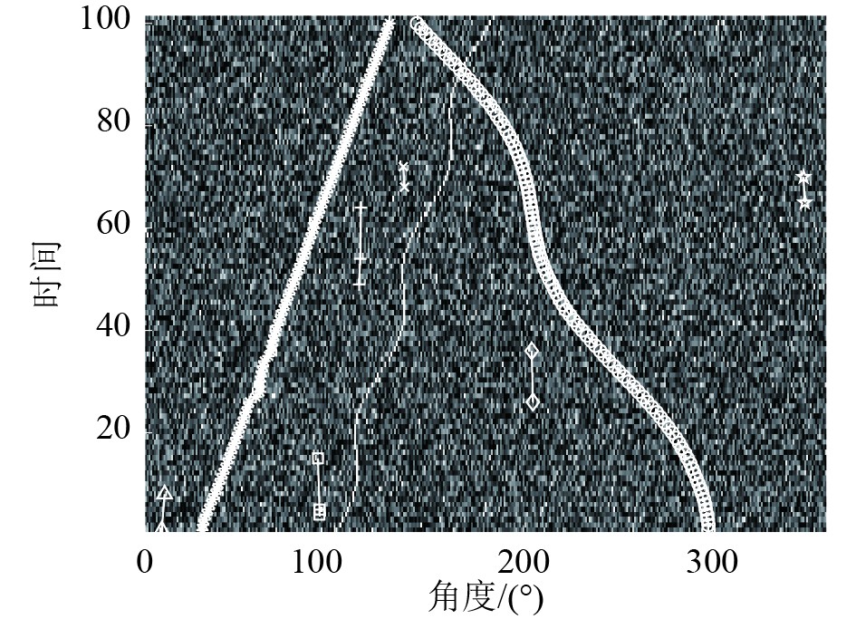 图 6 本文方法方位历程图峰值提取结果 Fig. 6 Peak Extraction results from bearing-time recording using the method in this paper |