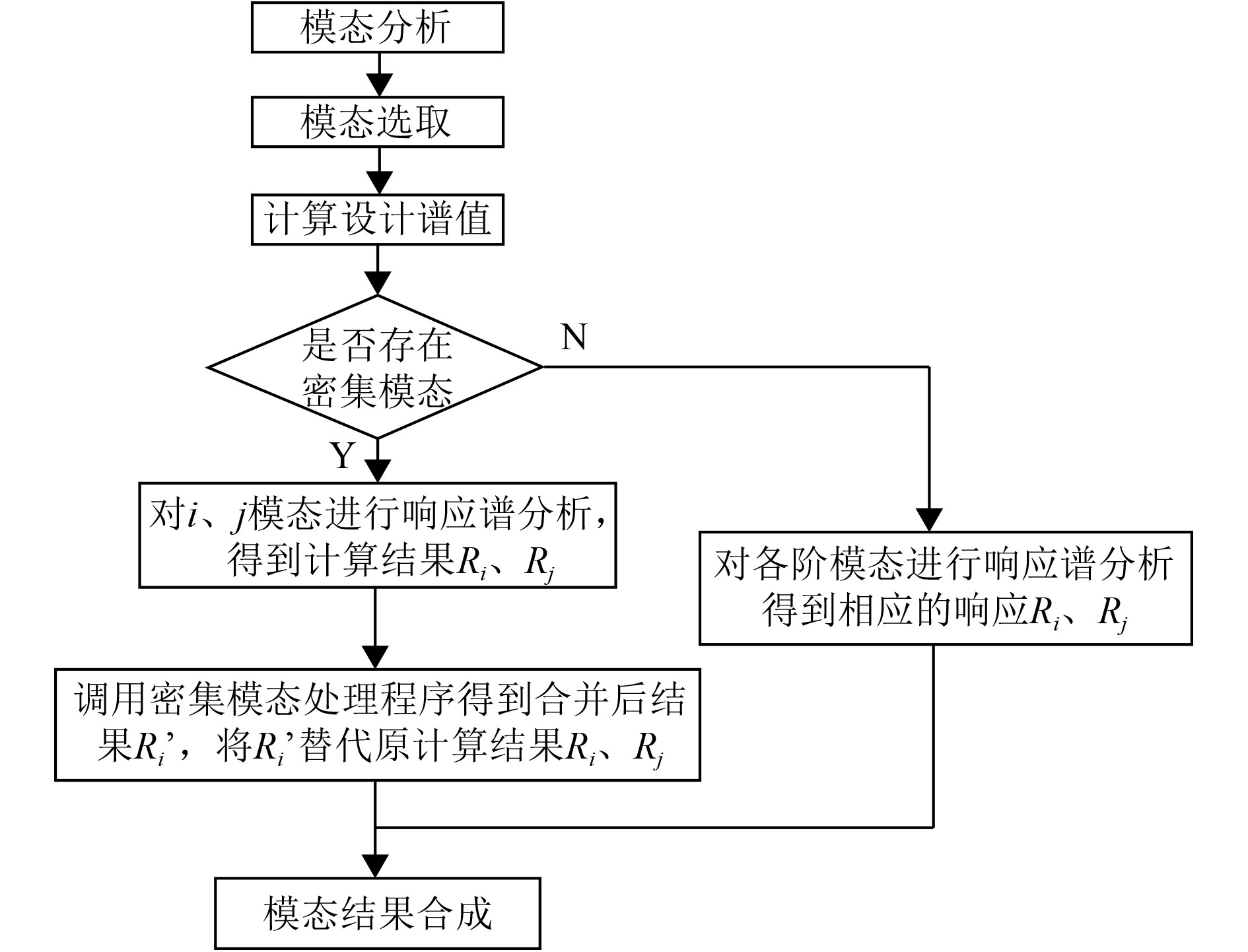 若存在密集模态,则用i、j定义两阶相邻的密集模态,单独对i模态进行响应谱分析,得到计算结果