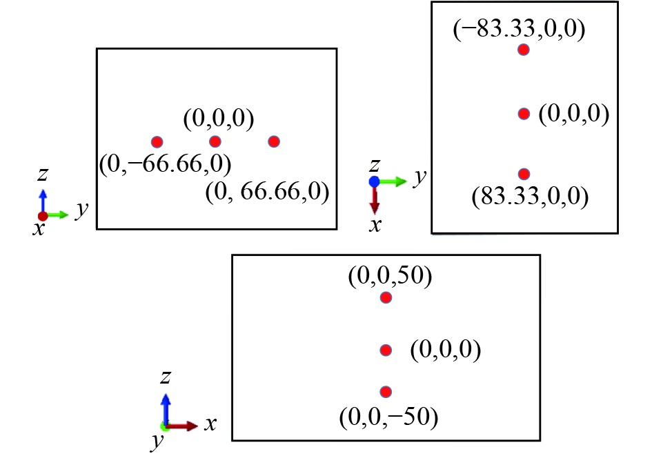图 4 不同质心变化三视图 Fig. 4 Three views of different centroid changes |