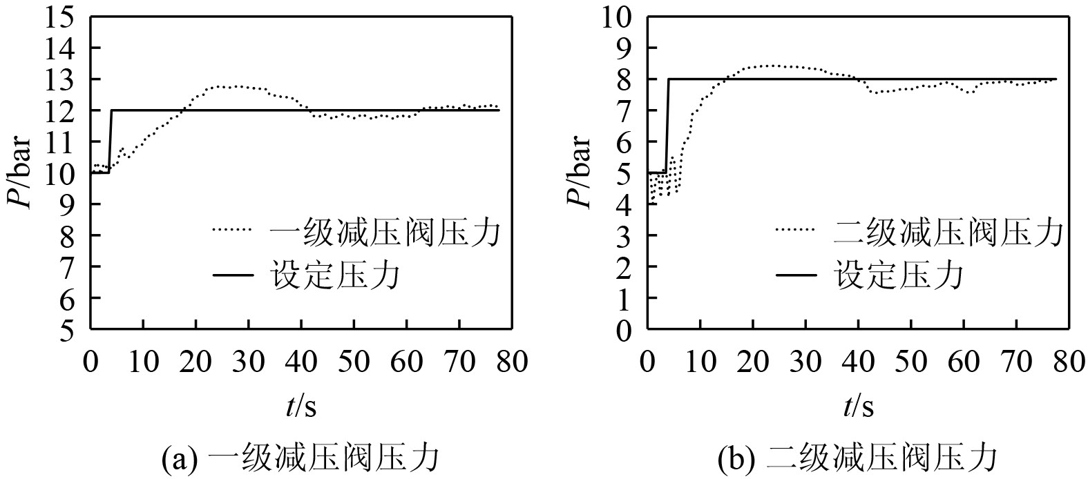 图 11 系统两级压力阶跃变化 Fig. 11 Two-stage pressure step change in the system |