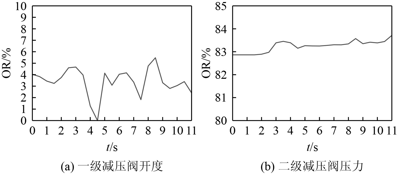 6)动态工况下两级压力联动调节时系统响应时间明显长于单级压力调节,这是由于两级压力同时调节相互干扰导致的。