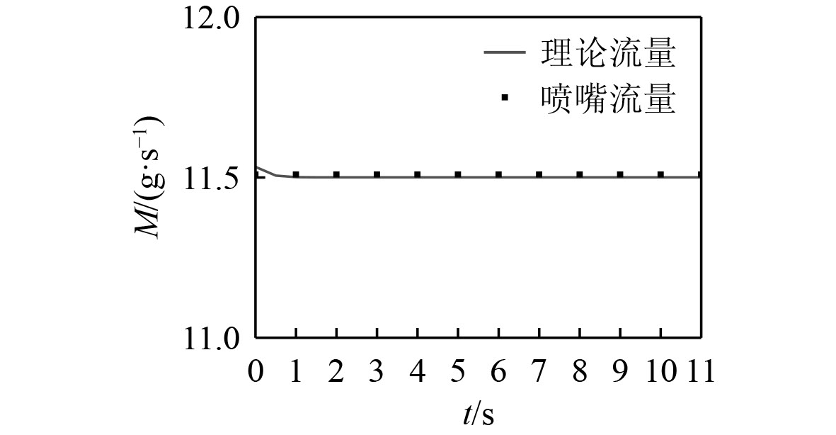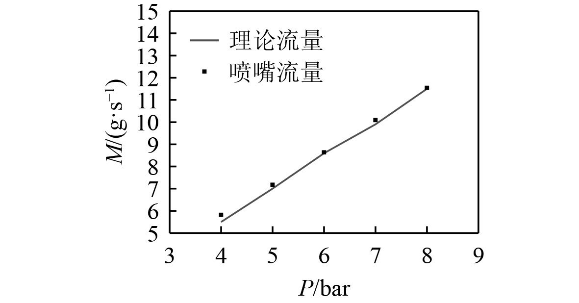 表1为SF6氧化剂供给调节系统试验参数,试验过程中喷嘴前气态SF6设定温度为40 ℃,使得气态SF6在试验压力范围内始终处于过热状态,防止其在喷嘴内发生液化导致流量不稳。