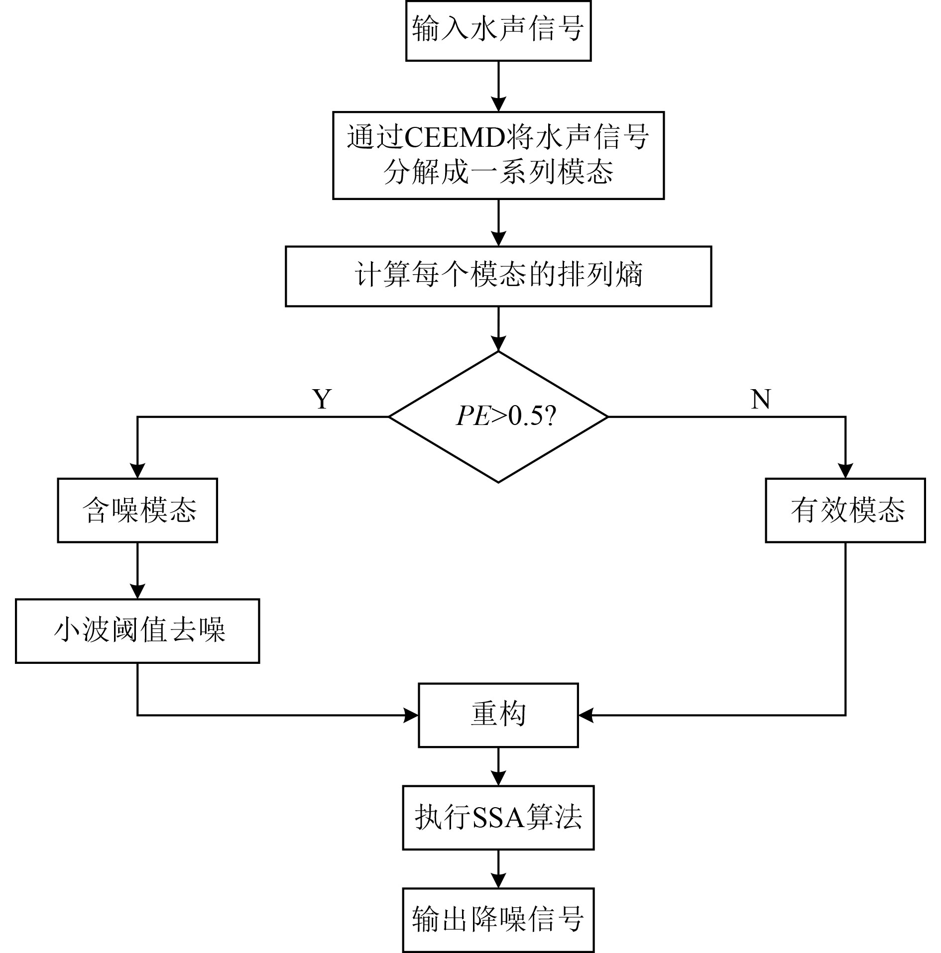 2 降噪方法和评价指标 2.1 基于CEEMD的联合降噪方法利用CEEMD的分解特点,联合排列熵、小波阈值去噪及奇异谱分析算法,提出一种基于CEEMD的联合降噪方法。该降噪方法的主要步骤如下: