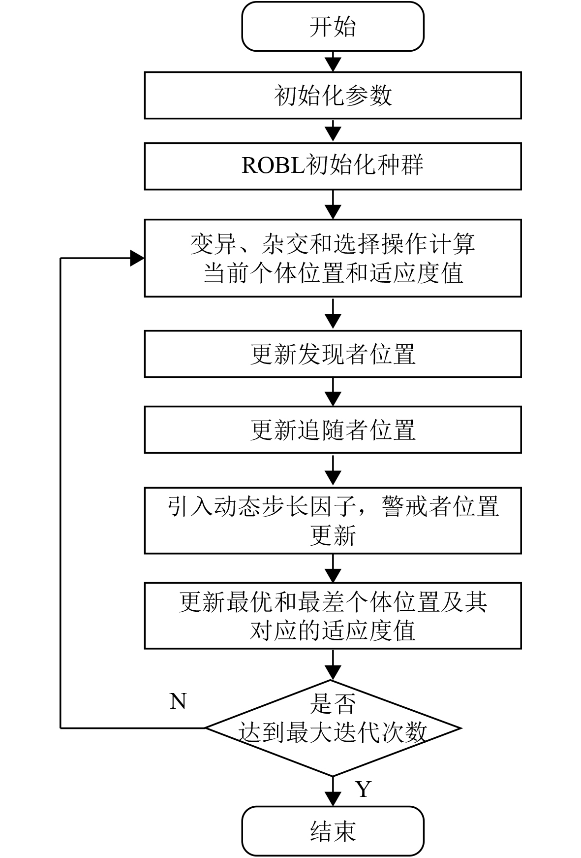图 4 改进后的麻雀优化算法流程 Fig. 4 Flowchart of the improved sparrow search algorithm |