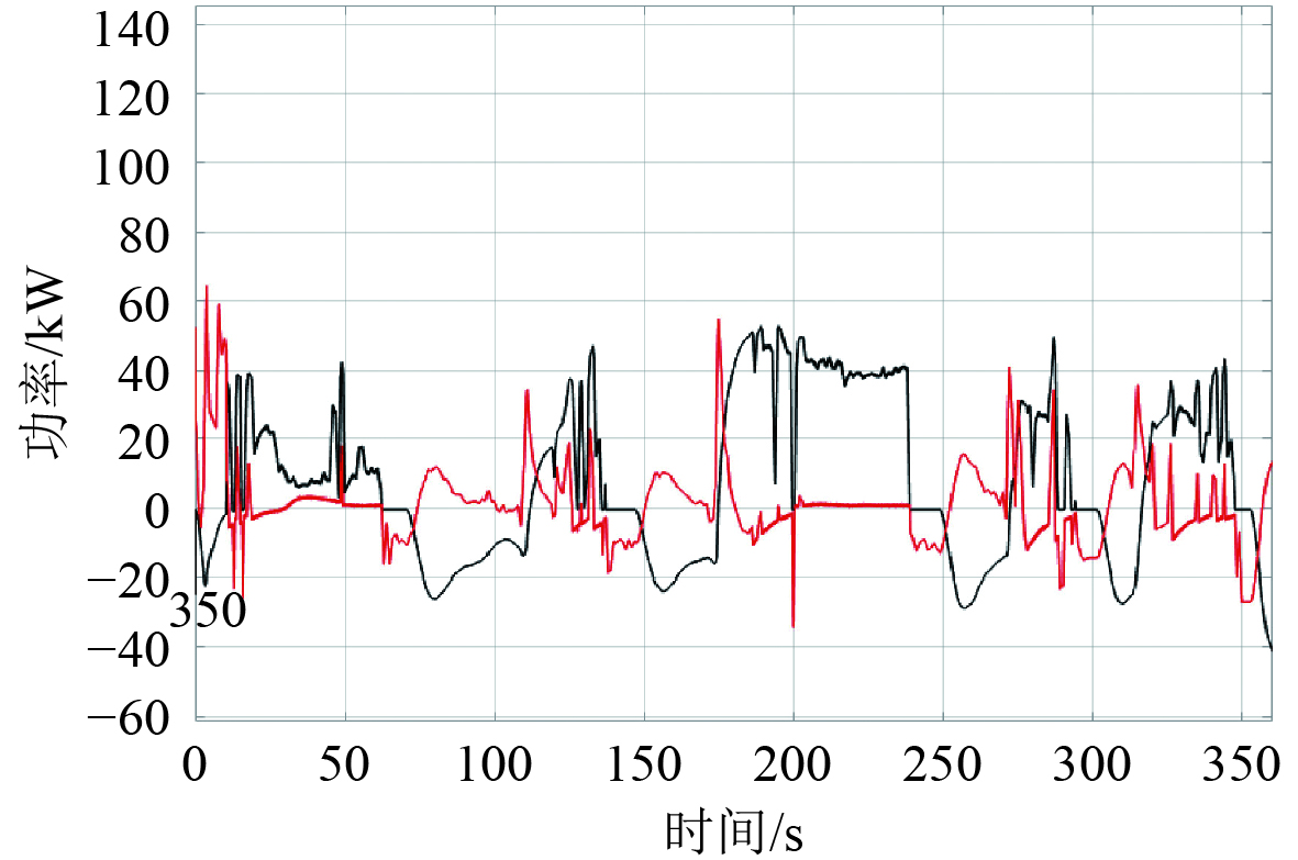 以设计的基于等效最小氢耗目标的模糊控制功率分配策略为基础,融合限值保护机制后获得的锂电池与超级电容输出功率如图5所示,这些数据作为优化模型的输入条件。
