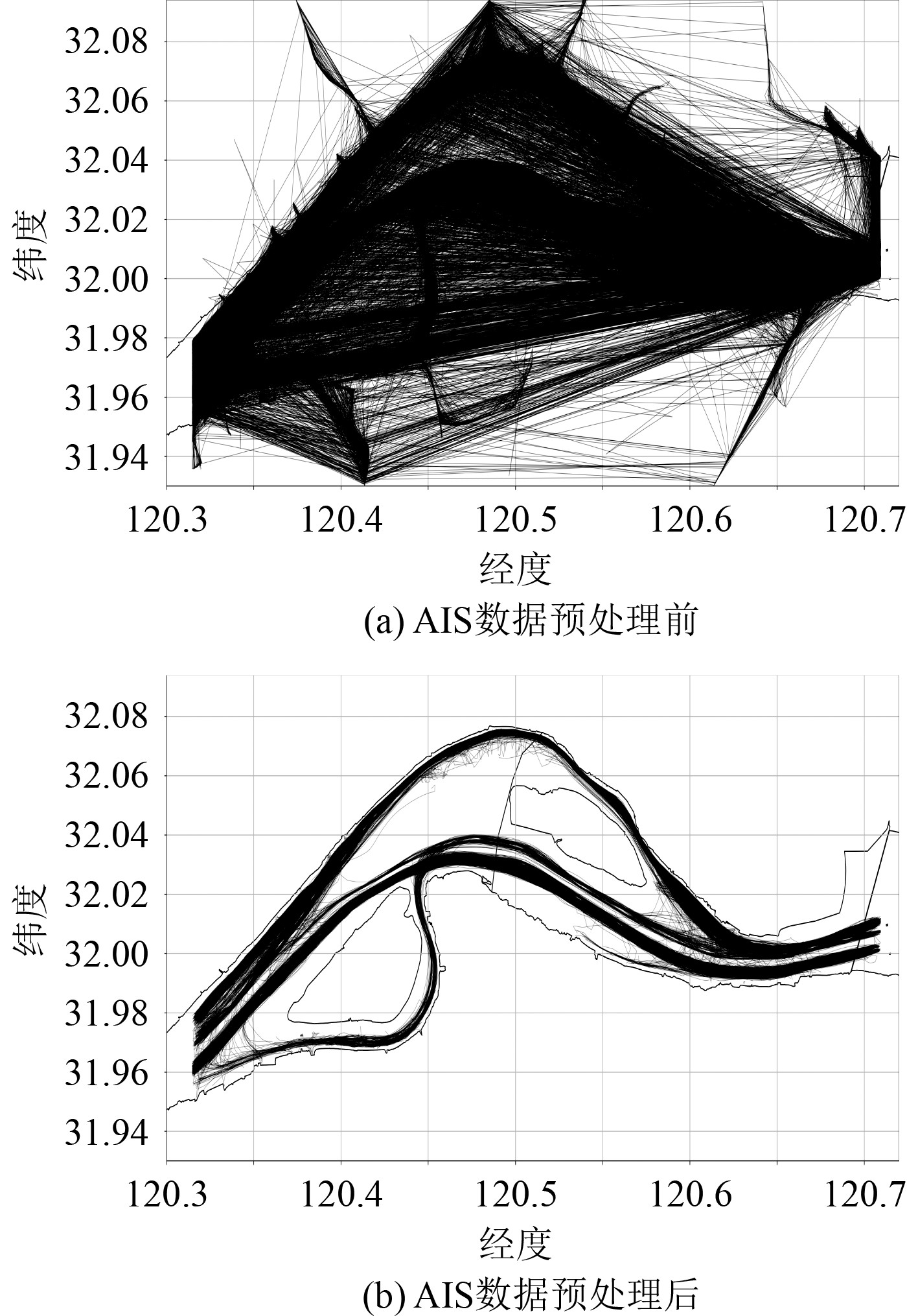 随着船舶数量不断增长以及通航密度持续上升,内河、港口等典型水域的通航环境日趋复杂[1 - 2],船舶运行协调与通航保障需达到更高水平。船舶自动识别系统(AIS)作为获取航行轨迹数据的重要手段,为通行规律分析与智能交通研究提供了海量动态数据支持。如何从复杂轨迹中识别通行结构、提取行为模式[3],是当前水域交通研究中的核心问题之一。