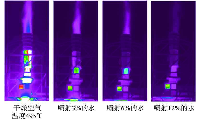 图 7 水雾型排气引射/扩压红外抑制装置测试的中波红外图像变化 Fig. 7 Changes in mid-wave infrared images of the water mist-type eductor/diffuser system test |