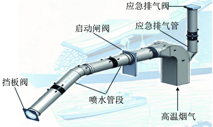 图 8 海水喷淋舷侧排气系统示意图 Fig. 8 Schematic diagram of the sea water spraying side emission exhaust system |