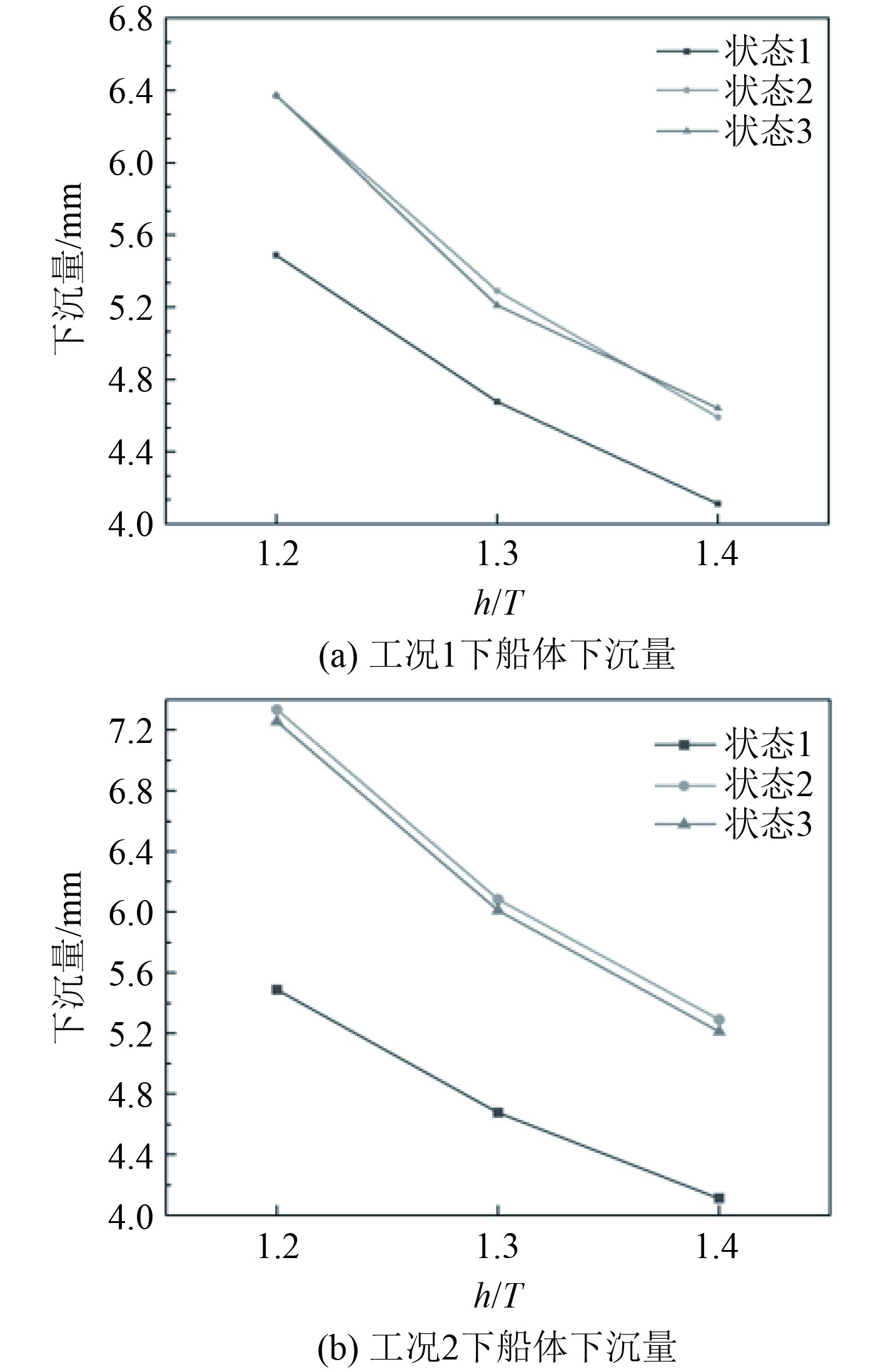 图 7 船舶在2种工况下的下沉量 Fig. 7 The squat of the ship under two working conditions |