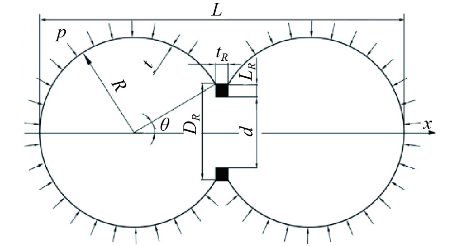 | $ {p}_{cr}=\frac{2E{t}^{2}}{\left(2\overline{{R}_{1}}-\overline{{R}_{2}}\right)\overline{{R}_{2}}}\sqrt{\frac{1}{3\left(1-{\mu }^{2}\right)}}。$ | (14) |