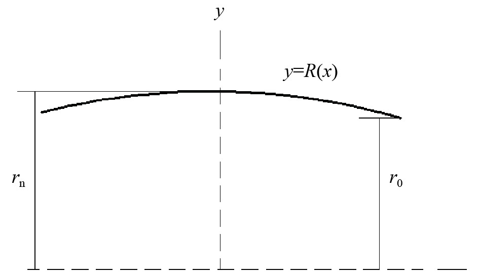 | $ {R}_{1}\left(x\right)=\left| \frac{{\left[1+{\left({R}^{\prime}\left(x\right)\right)}^{2}\right]}^{\frac{3}{2}}}{{R}^{\prime\prime}\left(x\right)}\right|,$ | (6) |