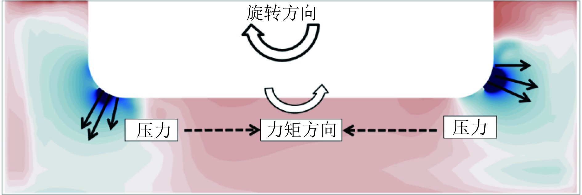 2.3.2 压力场分析为探究旋涡结构与受力间的直接关联,在图8 所示舭龙骨中部(约 1/2 长度处)取一横截面进行分析,船首方向设定为垂直于纸面向外。采用随体坐标系,可视化该截面的压力场云图,此处的压力